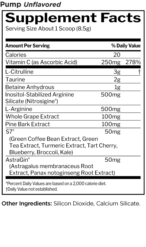A great ‘pump’ is a powerful thing. Physically, you can see the vascularity popping up from under the skin. Physiologically, oxygen rich blood engorges the hard-worked muscles causing them to swell. Psychologically, they’re hugely motivating. R1 Pump contains a capable combination of ingredients designed to help potentiate this cascade of events. Just add water, and then add exercise.ˆ