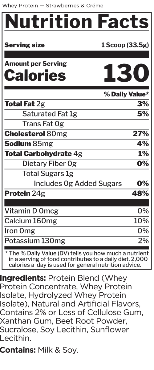Our three-whey blend offers the perfect mix of nutritional quality, great taste, and bang for your buck. 100% Whey Protein from whey concentrates, isolates, and hydrolysates, 24 grams of protein per scoop, and packed with naturally-occurring EAA, BCAA, and glutamine. An overachiever in every way – except price!